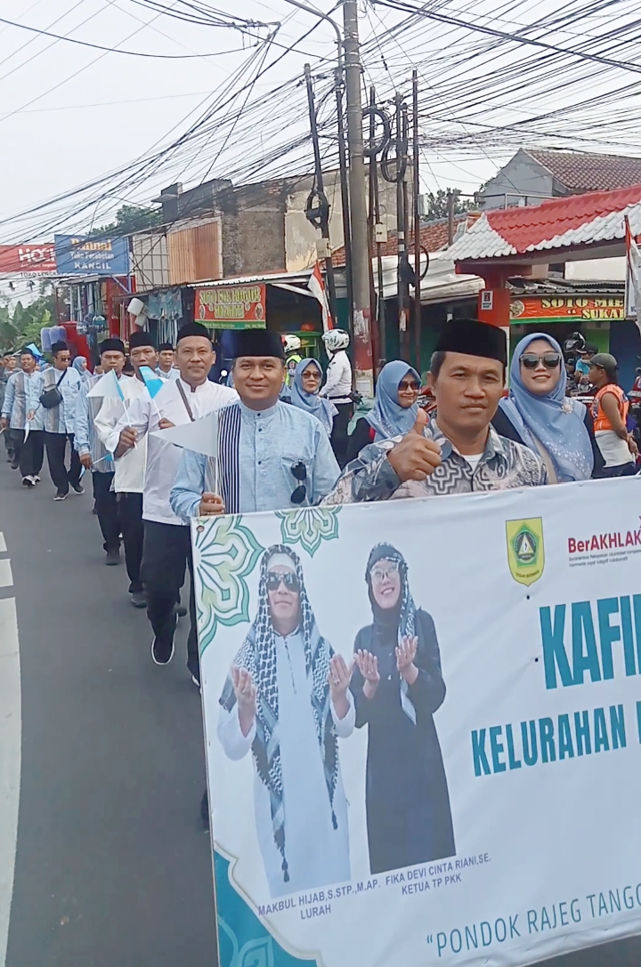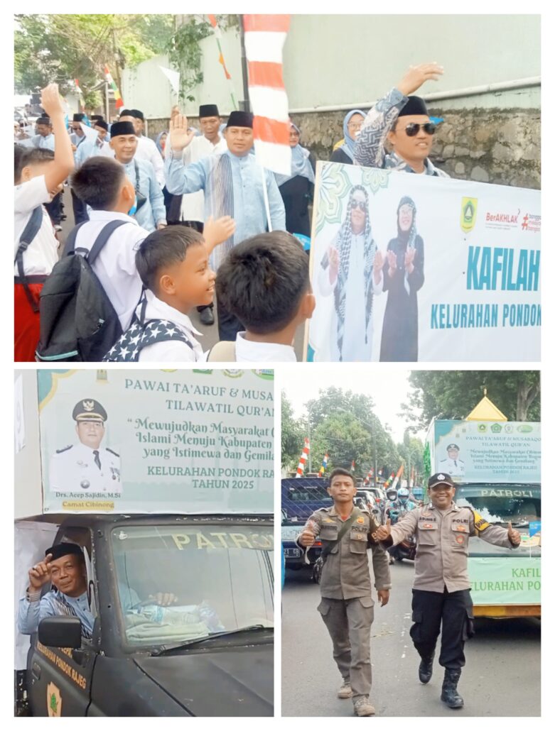 Kelurahan Pondok Rajeg tampil berbeda dengan nuansa mobil hiasan masjid dan musik islami diiringi marching band serta ibu – ibu PKK yang melantunkan sholawat.